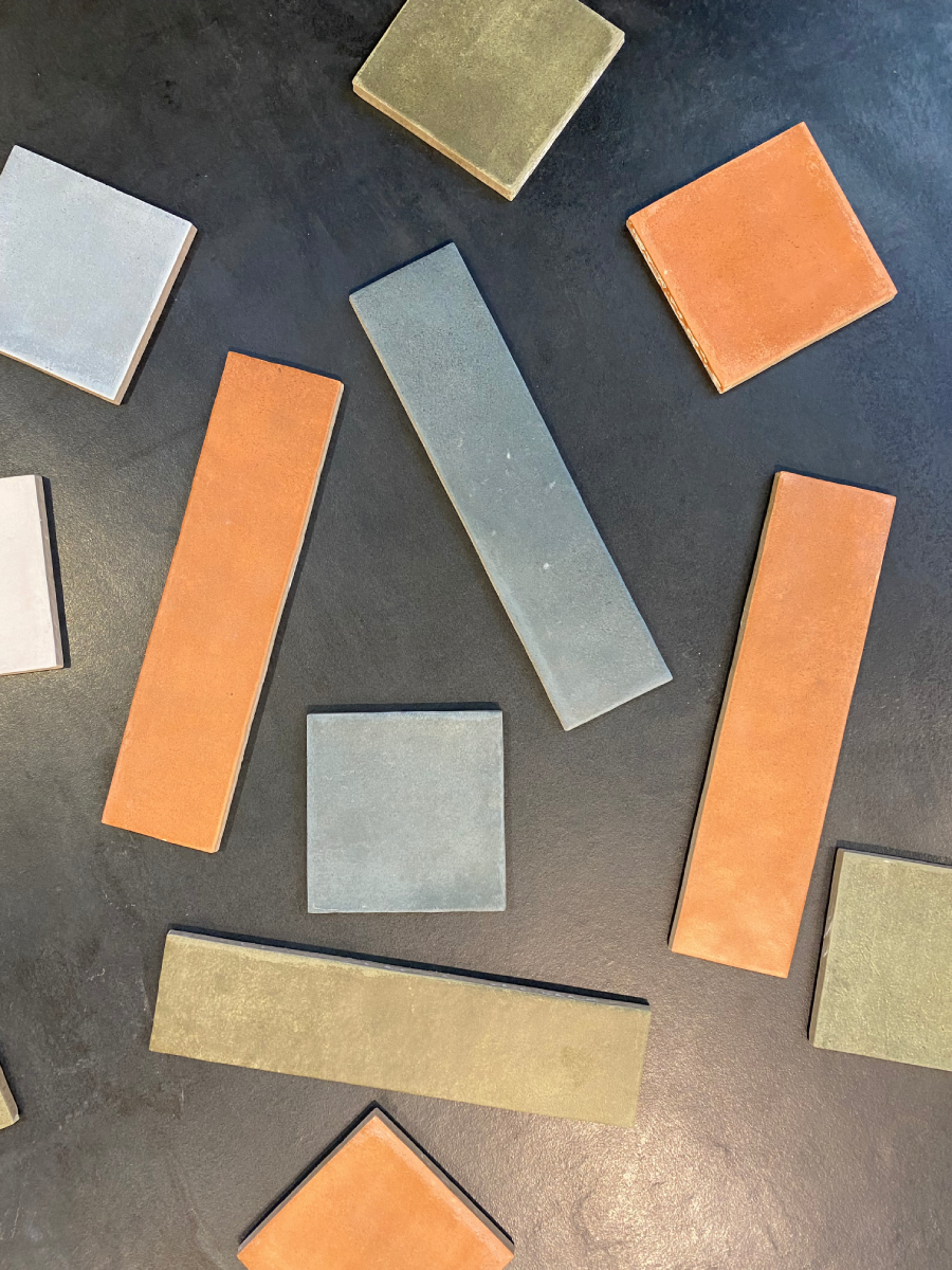 Pasta blanca se fabrican con base de arcilla libre de colorantes y, al pasar por el proceso de cocción, tienen una terminación grisácea. Pasta roja: Debido a que tiene contenido de óxido colorante y óxido de manganeso, adquiere un color que puede ser amarillo, rojo o marrón. Su tonalidad dependerá en buena medida de la cantidad de colorante utilizado. Según el modelado, existe la fabricación por extrusión (A) o por prensado en seco (B).