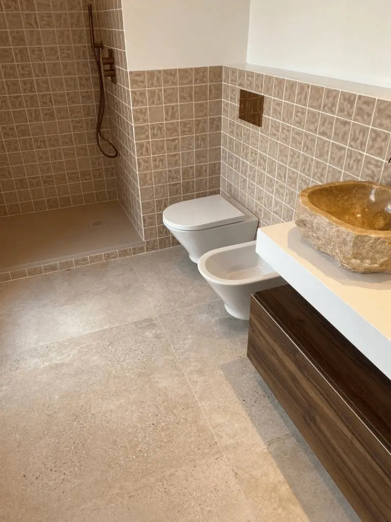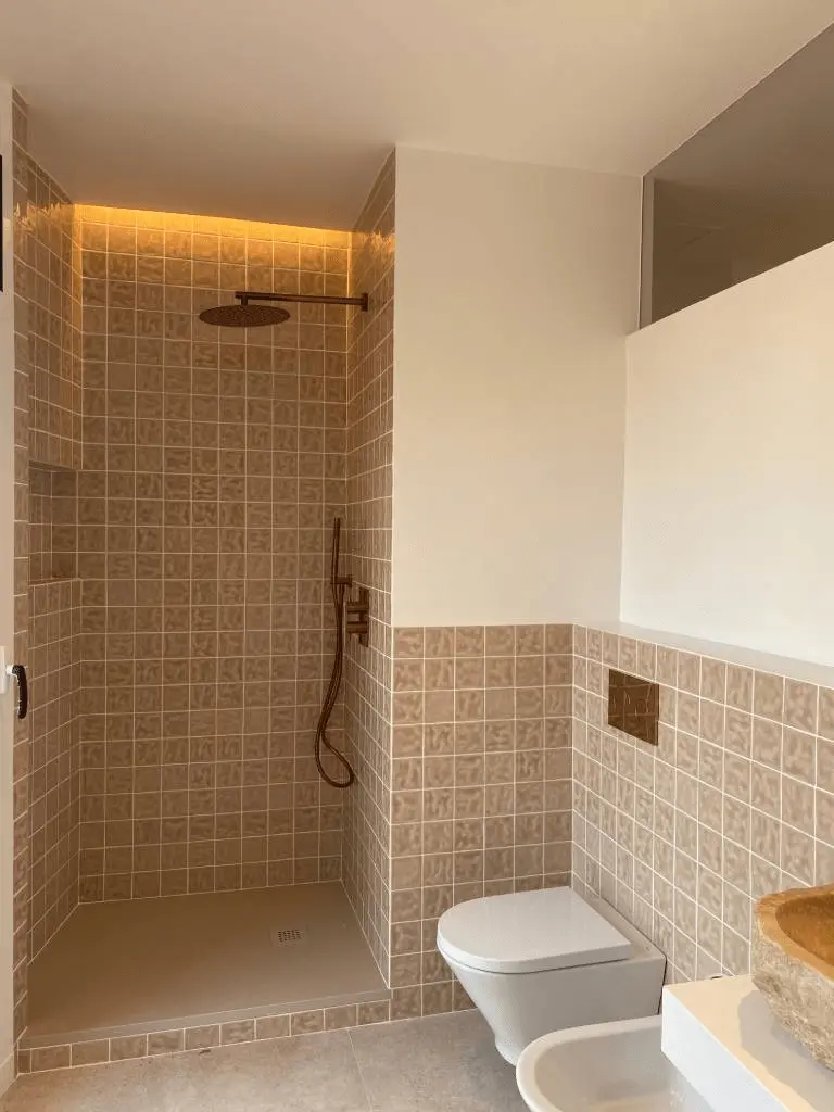 Septiembre – 2025. Suministro de los materiales para equipar los baños de una vivienda en calle Rosselló, Barcelona. En concreto, la cerámica tanto para el suelo como para las paredes, el mueble del lavamanos y el plato de ducha.